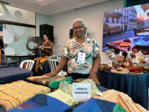 Já em Caarapó, a tecelã Josefa Mazarão, da Associação de Arte e Artesanato Vale da Esperança de Caarapó, atua há 30 anos com lã de ovelha para fabricação de tapeçaria e está com o Sebrae/MS desde o início dessa jornada. “A gente recebe apoio de todas as instituições, tanto do município, como do Sebrae e da Fundação de Cultura. Então, é muito importante poder participar nas feiras e alcançar mais clientes”, destaca.